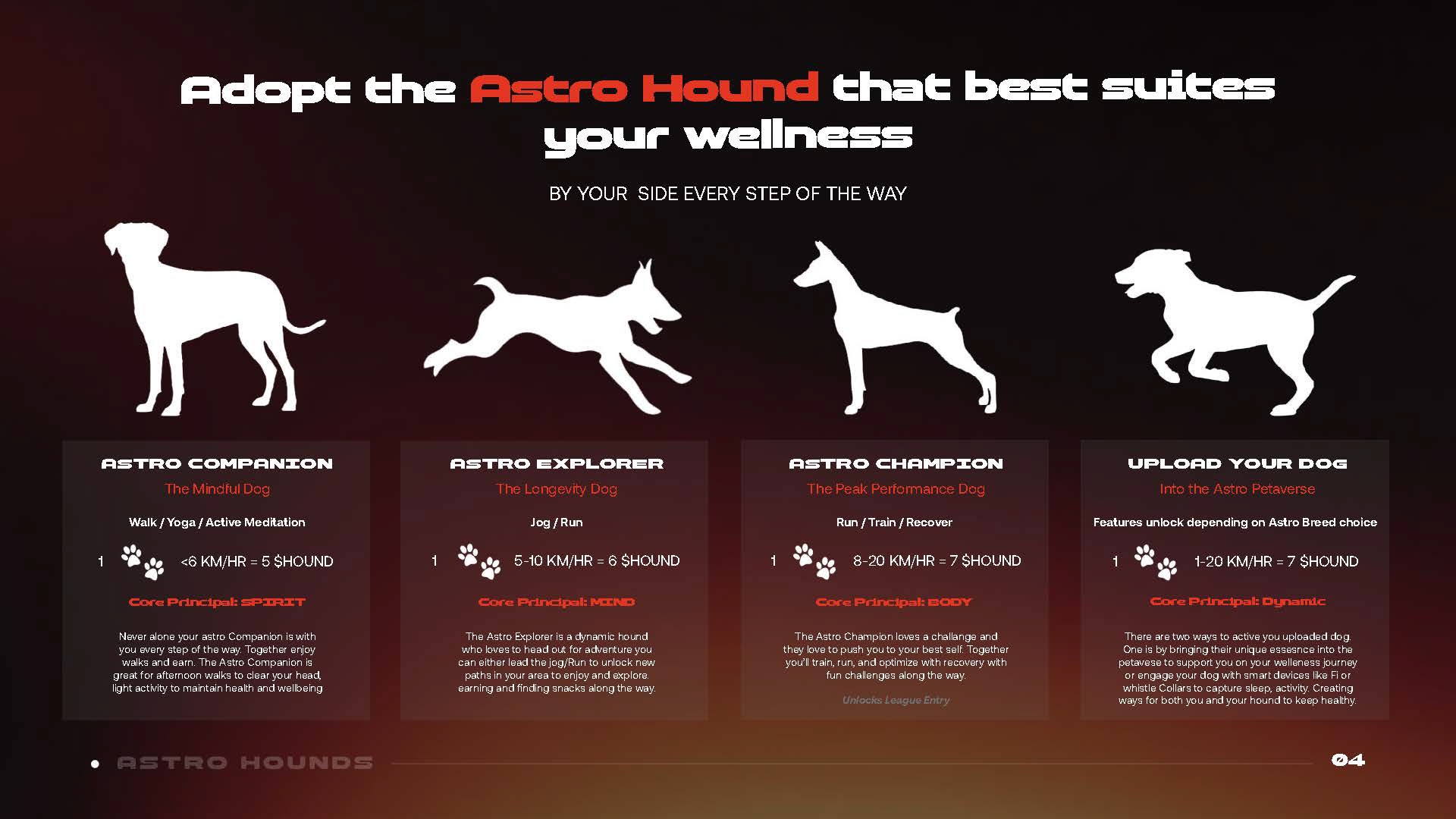 I working with AstroHounds to create a deck, to be pitched to potential investors. Key visuals were provided, but creative freedom was given to create something that suited their branding.