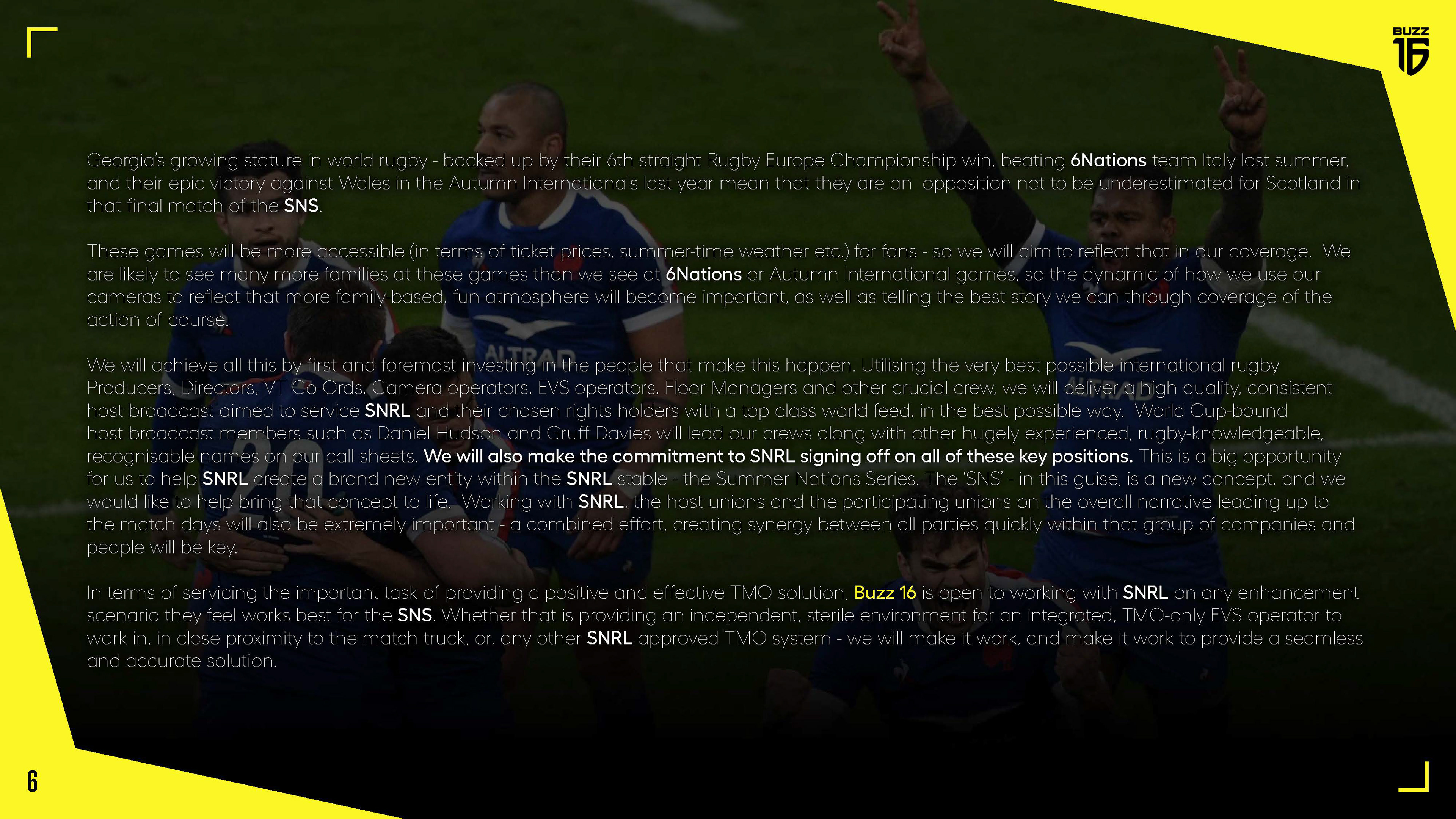 Deck created for Buzz 16's pitch for the live coverage and production of Six Nations Rugby's 'Summer Nations Series'.