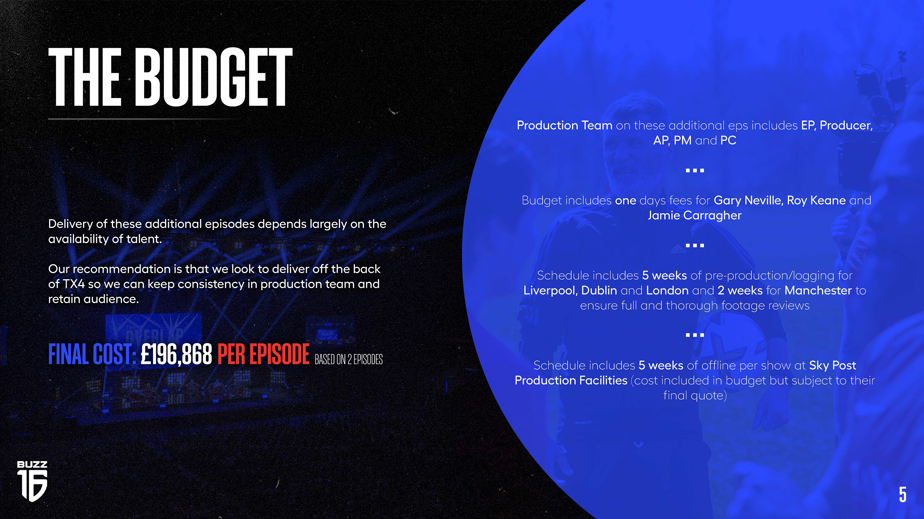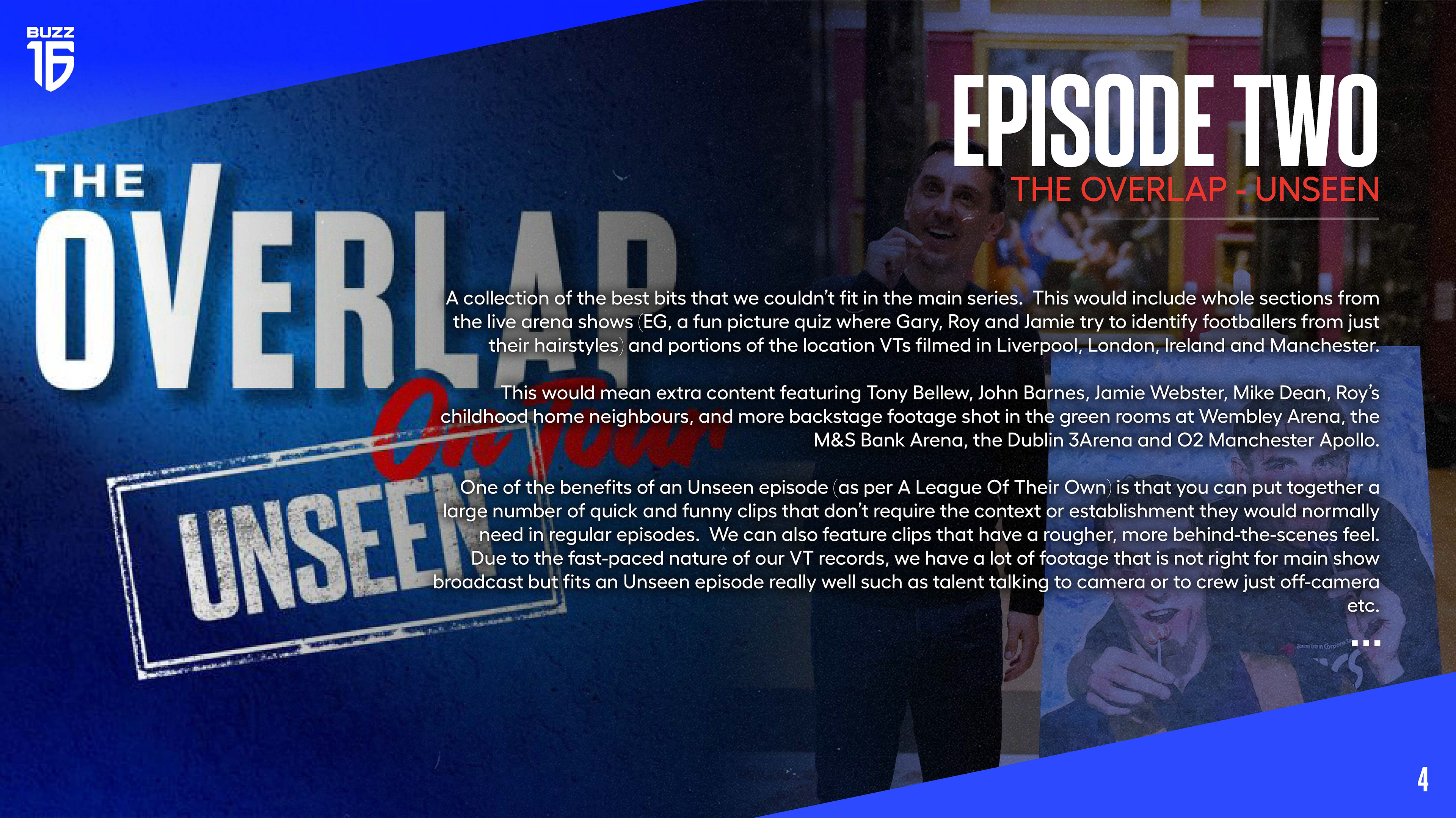 Buzz 16 gave me the opportunity to create a deck for their pitch to take on a further 2 episodes of the Sky series, 'The Overlap on Tour', featuring Gary Neville and Jamie Carragher.